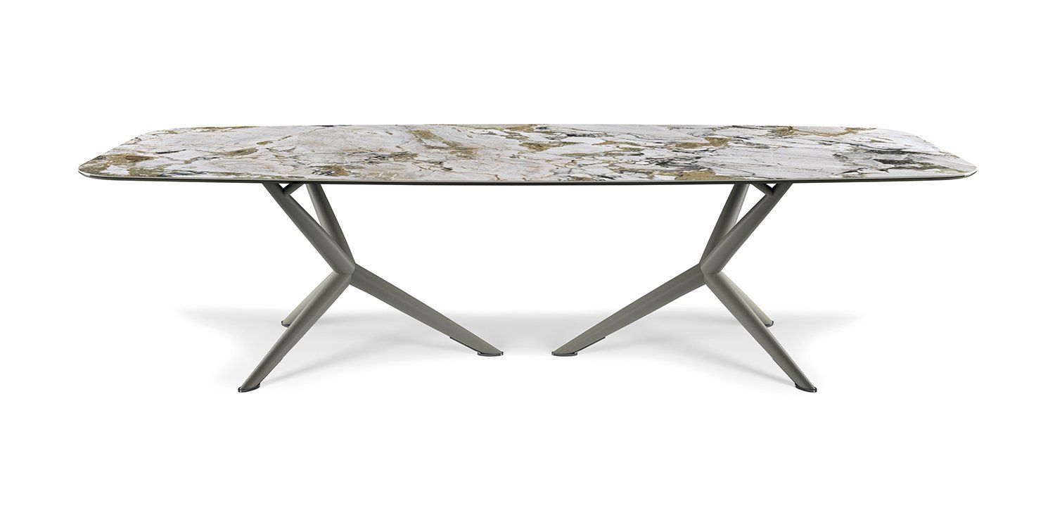 ist mit einer Tischplatte aus Keramik bestückt und ist in verschiedenen Größen, Formen und Farbvarianten verfügbar -