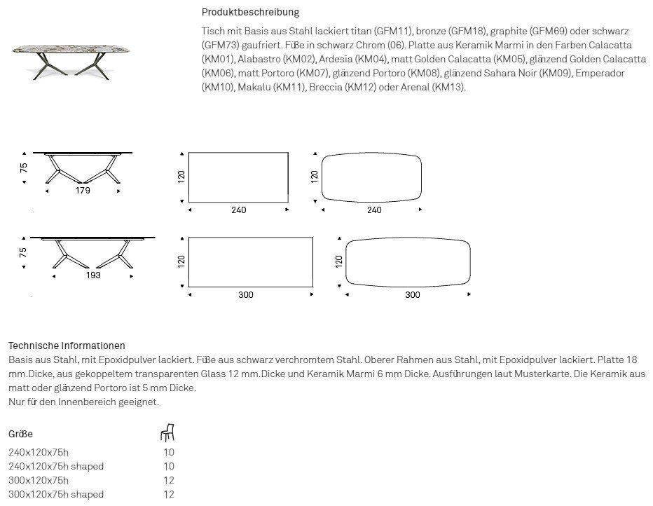ist mit einer Tischplatte aus Keramik bestückt und ist in verschiedenen Größen, Formen und Farbvarianten verfügbar -